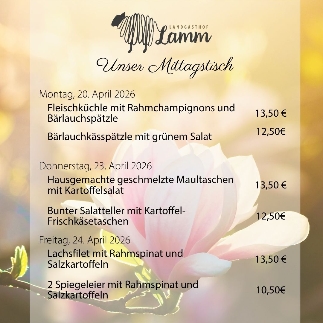 Sie möchten immer als erstes über unseren wöchentlichen Mittagstisch oder über unsere bevorstehende Menüabend informiert sein?